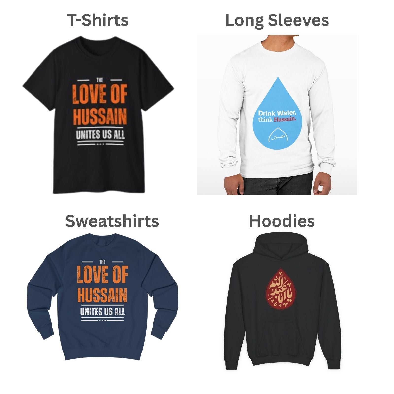 Our Adults Collection is designed to help you wear the message of Karbala with pride. From t-shirts and long-sleeves to sweatshirts and hoodies, each item is available in US adult sizes (XS to XL) and comes in a variety of colors. Celebrate the Ahlulbayt (A) and the spirit of Muharram with comfort, style, and meaning.